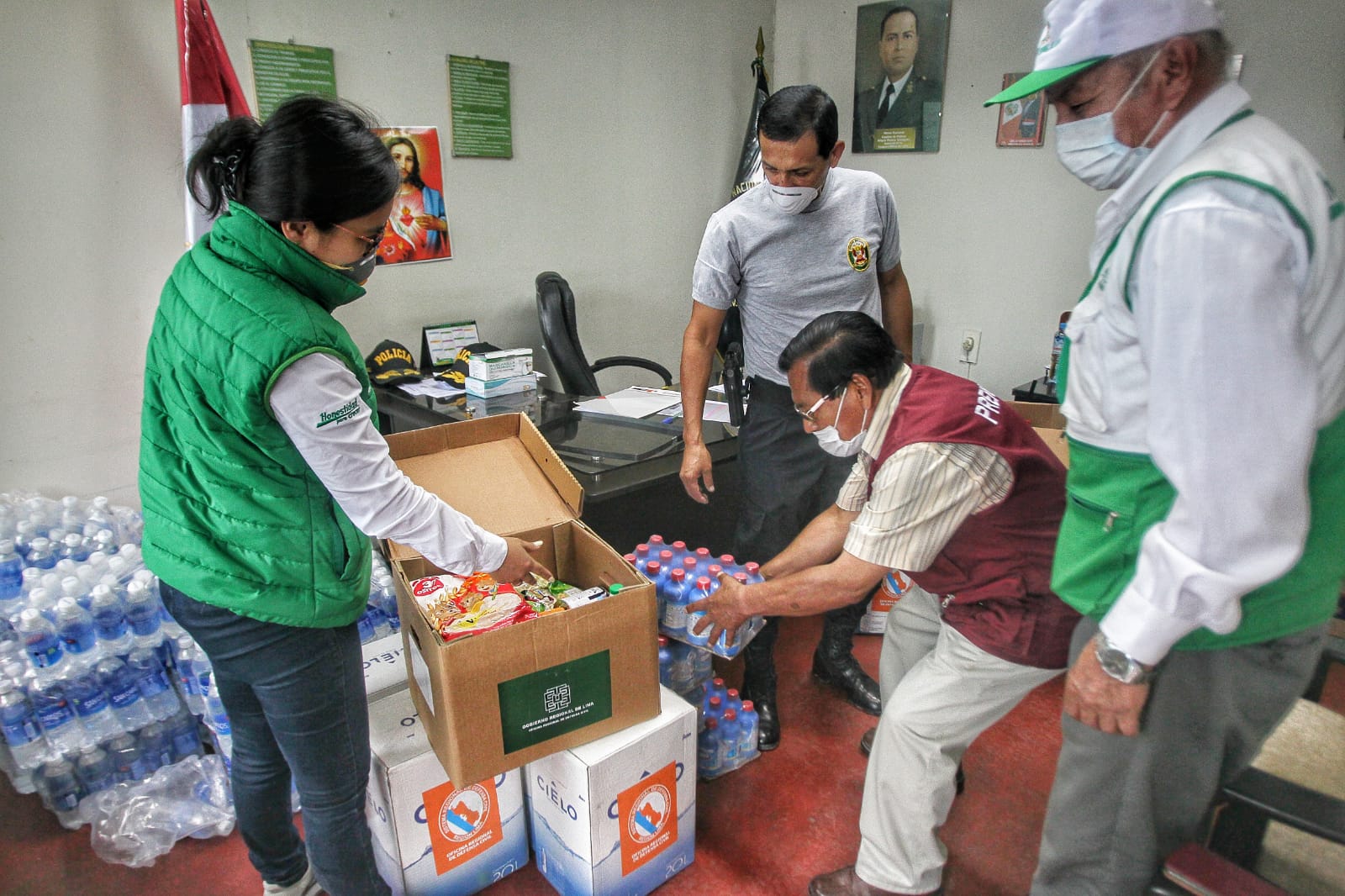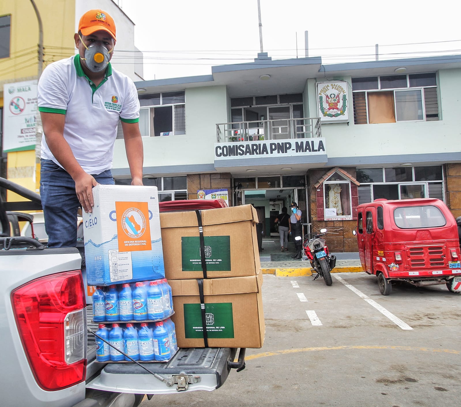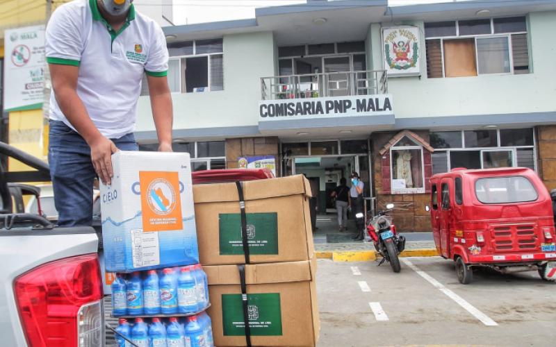 Comprometidos con garantizar la implementación de la medida de prevención del contagio del COVID19, en la provincia de Cañete la Gerenta de Recursos Naturales y Gestión del Medio Ambiente, Blga. Karina Takahashi en un trabajo articulado con la Prefectura Regional de Lima y la Unidad Ejecutora Lima Sur, hicieron entrega de apoyo a la Comisaría de la Policía Nacional del Perú, del distrito de Mala , provincia de Cañete.