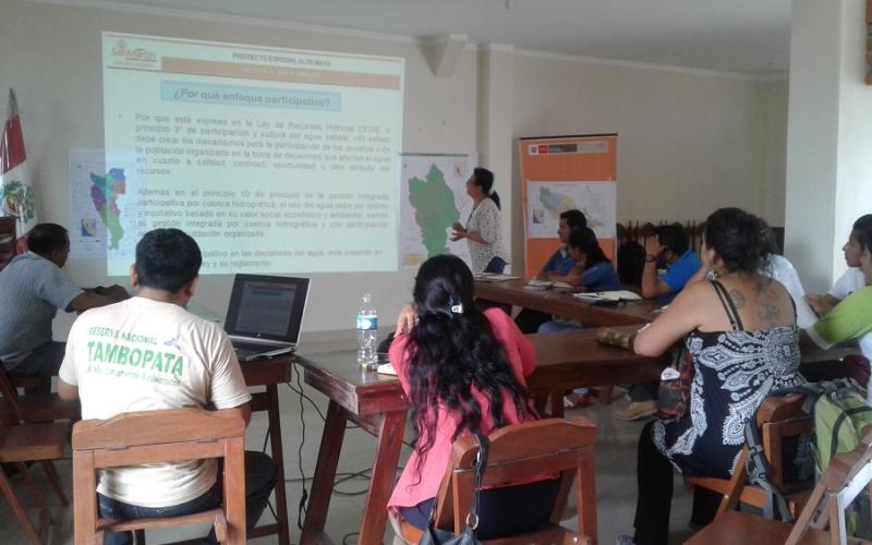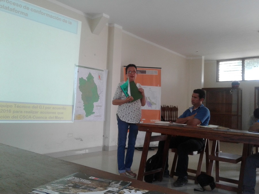 En ese contexto, se realizó una reunión el día miércoles 13 de septiembre de 2017 en la ciudad de Juanjuí, provincia de Mariscal Cáceres, con la participación de representantes de la Autoridad Regional Ambiental, Autoridad Administrativa de Agua, Grupo Técnico para la conformación y creación del Comité de Subcuenca en la Amazonía – Huayabamba y el Equipo Técnico del Grupo Impulsor - ETGI para la conformación y creación del Comité de Subcuenca en la Amazonía – Mayo, periodo 2011 al 2017 (Bach. Sandro De la Roca - Autoridad Regional Ambiental y la Lic. Josefa Mesía Vásquez - Proyecto Especial Alto Mayo), con la finalidad de conocer la experiencia y documentación generada durante el proceso de la cuenca Mayo.