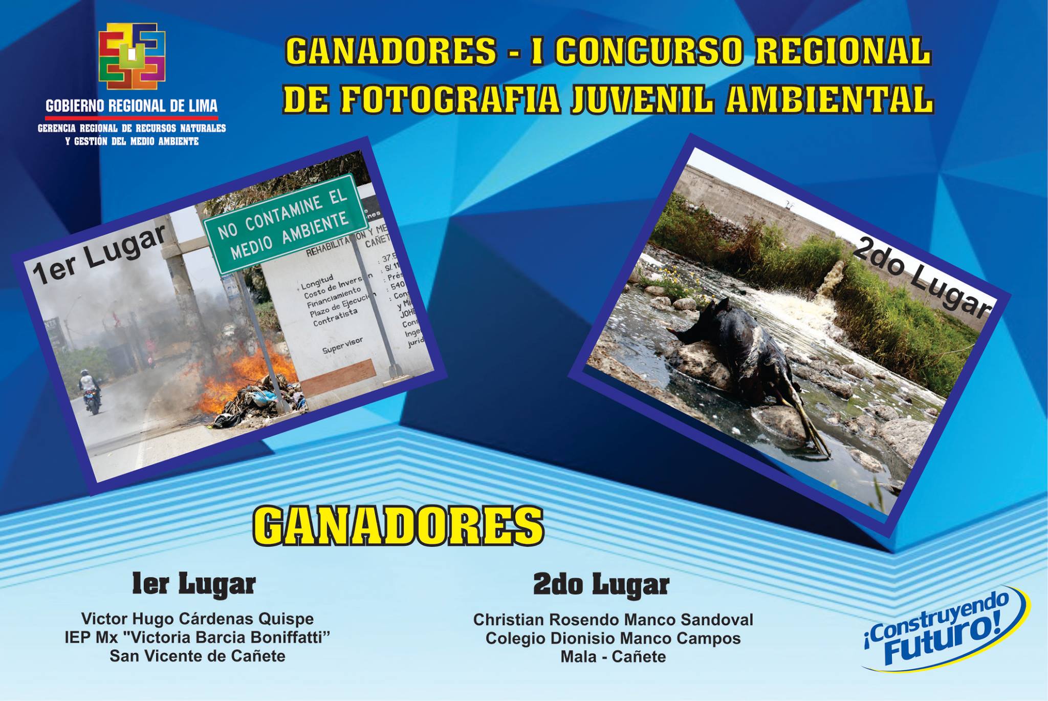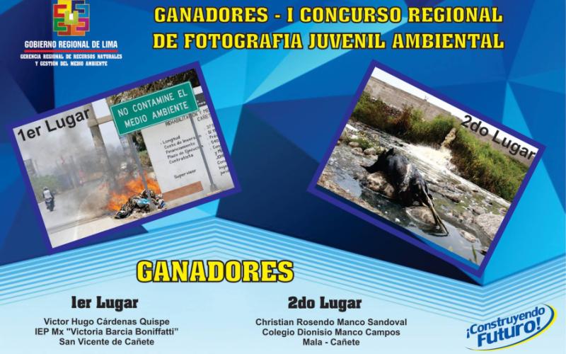 Estos son los ganadores del concurso de fotografía juvenil ambiental realizado en la Provincia de Cañete que organizó la Gerencia Regional de Recursos Naturales y Gestión del Medio Ambiente del Gobierno Regional de Lima.