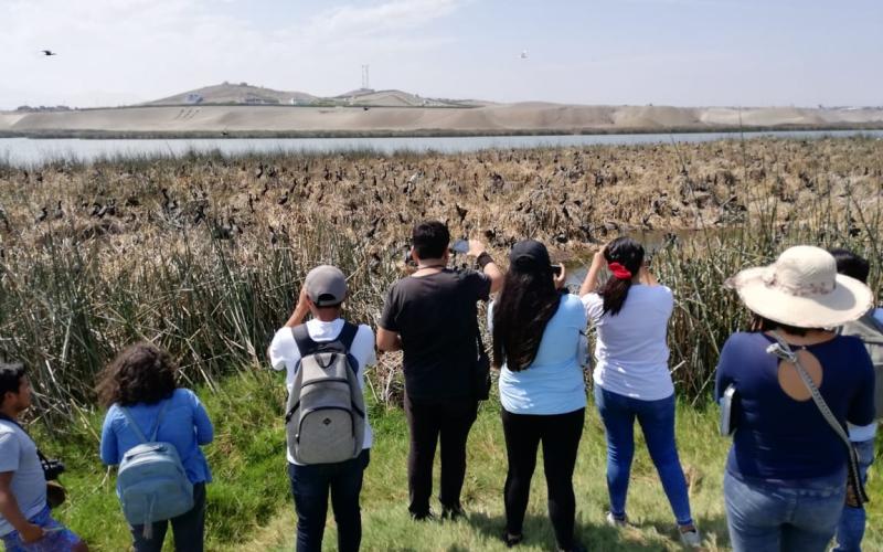 Especialistas de la Gerencia Regional de Recursos Naturales y Gestión del Medio Ambiente junto a estudiantes de la facultad de Ingenieria Ambiental de la Universidad Nacional Jose Faustino Sánchez Carrión y la Universidad Católica Sedes Sapientiae - Huacho, participan del Global Big Day , realizando el registro de especies de aves en el Área de Conservación Regional Albufera de Medio Mundo considerado como uno de los humedales con mayor biodiversidad de la Región lima.
