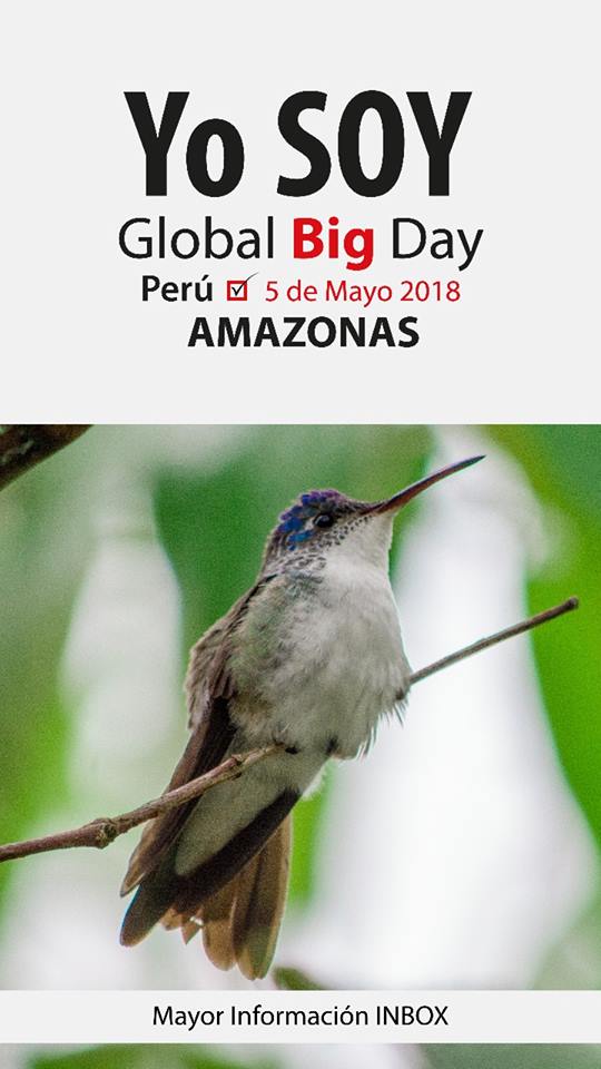 En Amazonas nos estamos organizando para el Global Big Day-GBD, que se desarrollará este 5 de mayo. El GBD es una competencia mundial de observación de aves. Perú has sido BICAMPEÓN MUNDIAL (2015 y 2016). Este 2018 volveremos a ser CAMPENONES MUNDIALES gracias a tu participación. Únete al equipo GBD-Amazonas y formarás parte de la selección peruana de pajareros. Solo necesitas deseo de aprender en las salidas de campo que se irán programando. Se parte de la aventura que pondrá el potencial ecoturístico de nuestra región ante los ojos del mundo y disfruta la naturaleza desde los 1300 hasta más de 3500msnm gracias a la red de Áreas de Conservación más extensa del país (Red AMA). ¿Te interesa aprender desde cero este arte? Solicita unirte al grupo whatsapp de coordinación (996343464) cada voluntad cuenta. DIFUNDE Y COMPARTE. Vaoooos con tooo!!!