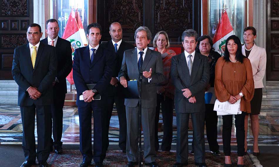 El Ministro del Ambiente, Manuel Pulgar-Vidal, presidió la conferencia de prensa sobre el tema ofrecida en Palacio de Gobierno. Indicó que los ministerios de Ambiente; Agricultura y Riego; Vivienda, Construcción y Saneamiento; Salud; Educación; Energía y Minas; Interior; Defensa; Cultura; Mujer y Poblaciones Vulnerables; Desarrollo e Inclusión Social; y Producción, se ocuparán de la población afectada, estimada en cerca del 41% de la población de dicha región que se ha sufrido esta contaminación a causa de la minería ilegal.