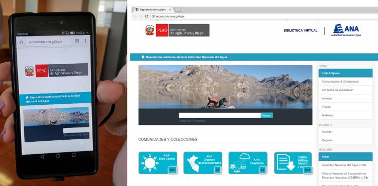 El Gobierno del Perú, a través del Ministerio de Agricultura y Riego, implementó el Repositorio Digital de la Autoridad Nacional Agua (ANA), donde estudiantes e investigadores nacionales y extranjeros pueden consultar gratuitamente más mil cien (1100) publicaciones digitales relacionadas a los recursos hídricos y temas afines, provenientes de documentos técnicos, bibliográficos y cartográficos.