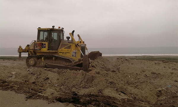 Un cargador frontal y un tractor oruga de la entidad regional y municipio provincial de Huaura, respectivamente, trabajan en un frente superior a un kilómetro, para afrontar los daños ocasionados por las invasiones.