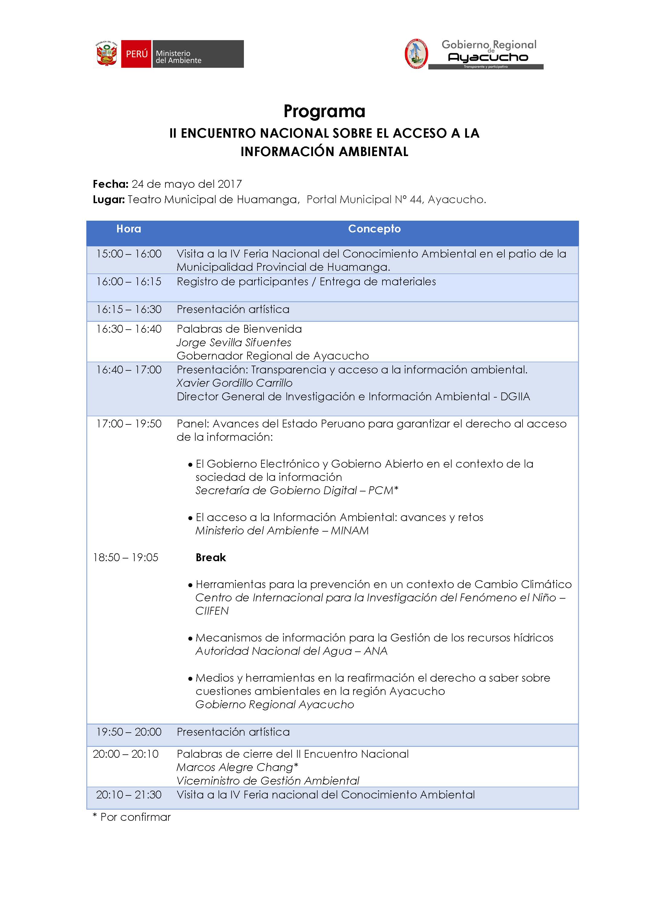 El Ministerio del Ambiente, en coordinación con la Gerencia Regional de Recursos Naturales y Gestión del Medio Ambiente del Gobierno Regional de Ayacucho, organizan el "II Encuentro Nacional de Acceso a la Información Ambiental" actividad que contribuirá a identificar y desarrollar mecanismos que permitan administrar de manera eficiente y sostenible la información ambiental generada en nuestra Región; evento que contara con las participación del CIIFEN, USAID, MINAM y el PRODERN.