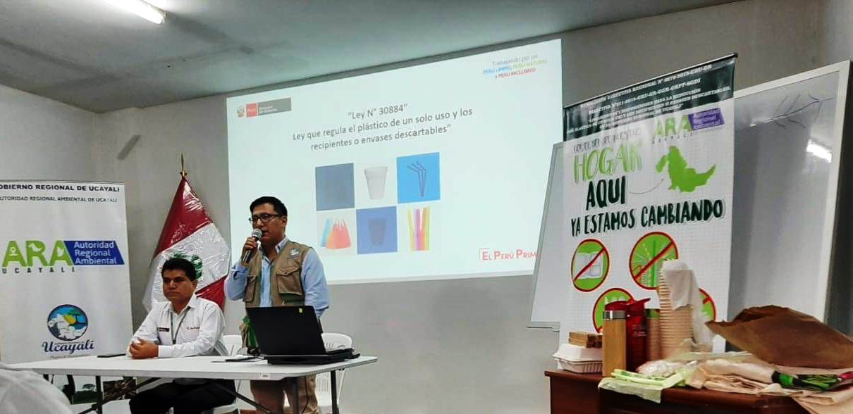 El viernes 23 de Agosto la Autoridad Regional Ambiental de Ucayali, a través de la Dirección de Gestión Ambiental con el apoyo de la Oficina de Gestión de las Personas y en coordinación con el Ministerio del Ambiente, se llevó a cabo el Taller de sensibilización “ LINEAMIENTOS PARA LA IMPLEMENTACIÓN EN MARCO A LO DISPUESTO EN LA LEY N° 30884, LEY DEL USO DE PLÁSTICOS DE UN SOLO USO Y LOS RECIPIENTES Y/O ENVASES DESCARTABLES, ASÍ COMO LO NORMADO EN LA DIRECTIVA N° 011-2019-GRU-GR-GGR-GRPP-SGDI”. EL cual busca sensibilizar al personal de las distintas dependencias del Gobierno Regional de Ucayali a utilizar productos alternativos al plástico de un sólo uso, biodegradables y que sean ecoamigables con el medio ambiente.