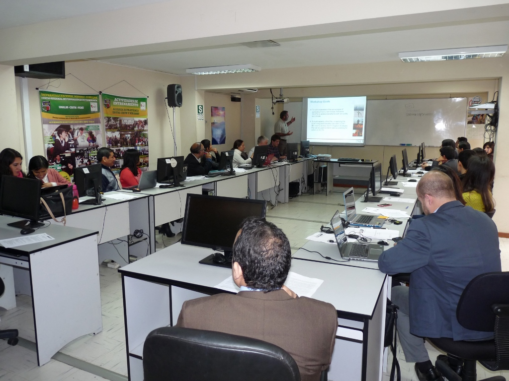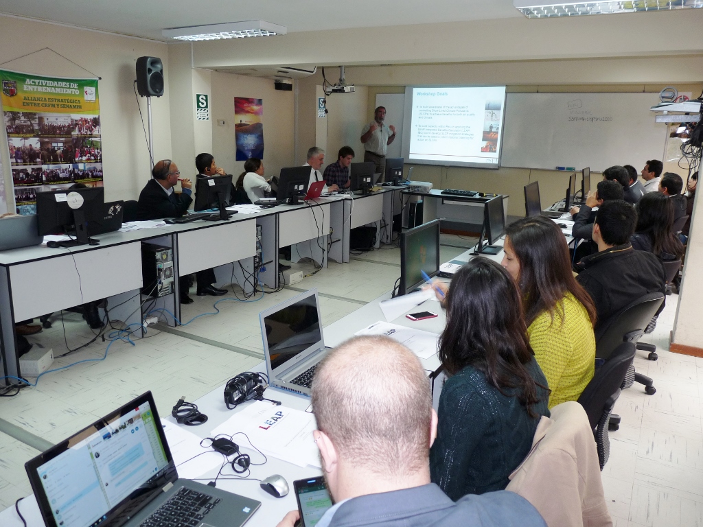 Este taller se realizó los días 08 y 09 de agosto en el Centro de Capacitación del Servicio Nacional de Meteorología e Hidrología del Perú (SENAMHI) y contó con la participación de expertos del Instituto Ambiental de Estocolmo (Stockholm Environment Institute - SEI), quienes desarrollaron la capacitación con ejemplos prácticos de la herramienta de cálculo. El taller contó con 25 participantes de diferentes organizaciones como el MINEM, SENAMHI, IGP, GESTAs de Ica, Pucallpa y Huancayo, COSUDE, I_UAPPA y la Embajada de EE.UU en Perú.