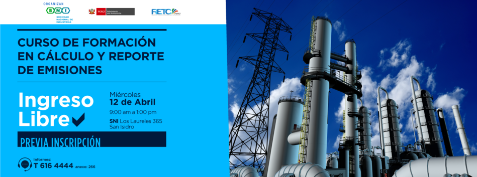 Lima, 06 de abril de 2017.- Con la finalidad de promover la participación de las industrias en el proceso de implementación del Registro de Emisiones y Transferencia de Contaminantes (RETC), el Ministerio del Ambiente (MINAM) con apoyo de la Sociedad Nacional de Industrias (SNI), invitan a participar del Curso de Formación en Cálculo y Reporte de Emisiones a realizarse este miércoles 12 de abril a partir de las 9:00 horas en las instalaciones de la SNI (calle Los Laureles n.° 365, San Isidro).