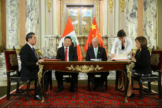 Lima, 21 de noviembre de 2016.- El Ministerio del Ambiente de la República del Perú y el Ministerio de Protección Ambiental de la República Popular China firmaron hoy un Acuerdo de Cooperación Ambiental, el cual busca promover la cooperación en el campo de protección del ambiente y el manejo sostenible de los recursos naturales, para ello se identificarán actividades y proyectos conjuntos en base a criterios de igualdad y beneficio mutuo, enmarcado en los principios de cooperación Sur – Sur.