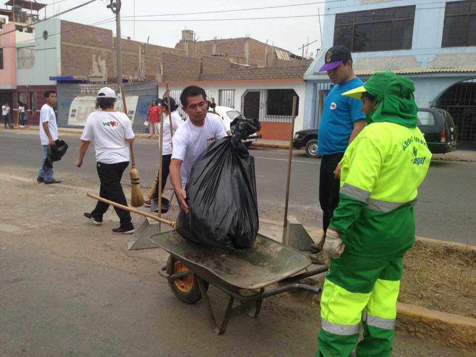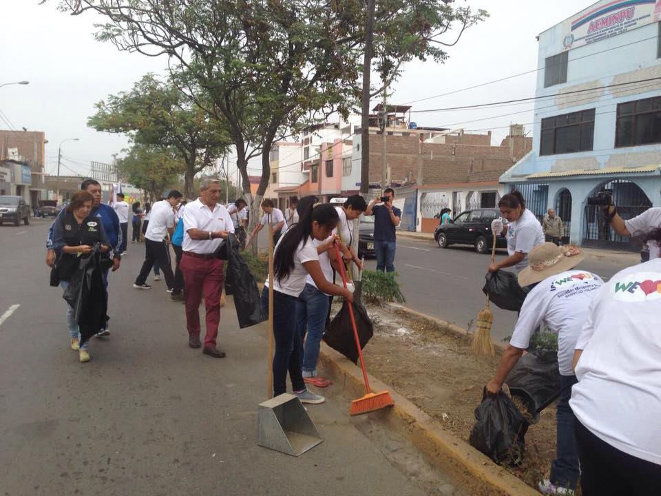 La Municipalidad Provincial de Trujillo (MPT) junto a un grupo de 100 miembros de la Fundación Internacional “We love you”, realizó una campaña integral de limpieza en la prolongación de la avenida Perú.