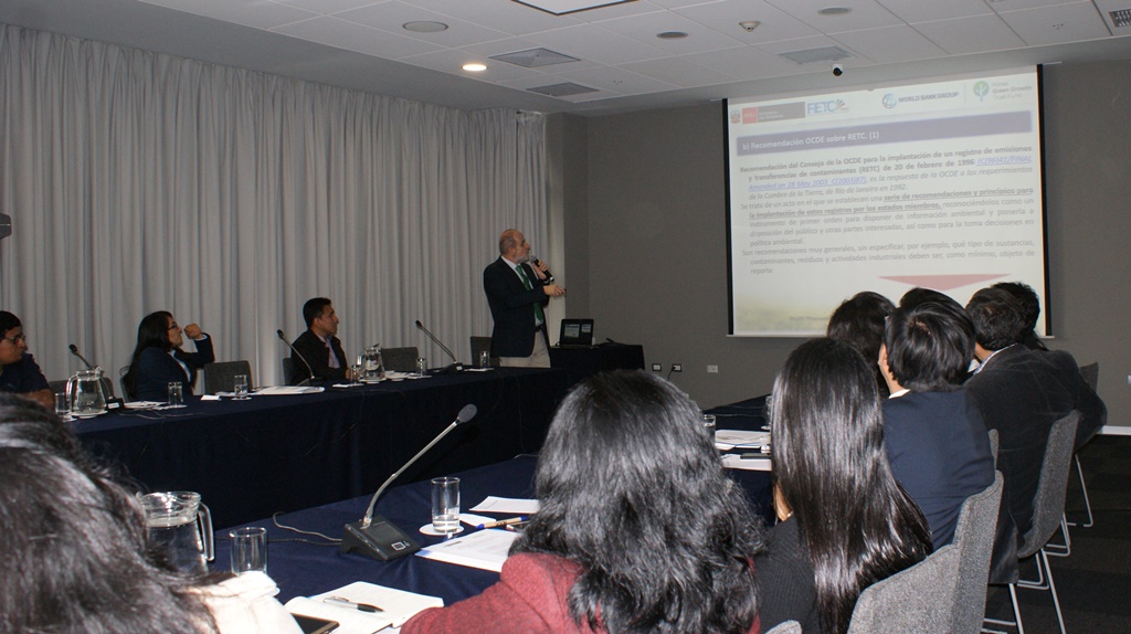 Lima, 11 de diciembre de 2017.- El pasado 7 de diciembre, el Ministerio del Ambiente del Perú (MINAM), en colaboración con el Banco Mundial y el Fondo Coreano para el Crecimiento Verde, presentó la "Propuesta Nacional para la aplicación del Registro de Emisiones y Transferencias de Contaminantes (RETC) frente a los estándares de la Organización para la Cooperación y el Desarrollo Económicos (OCDE)" ante sectores gubernamentales en el marco del proceso de adhesión del Perú a la OCDE.