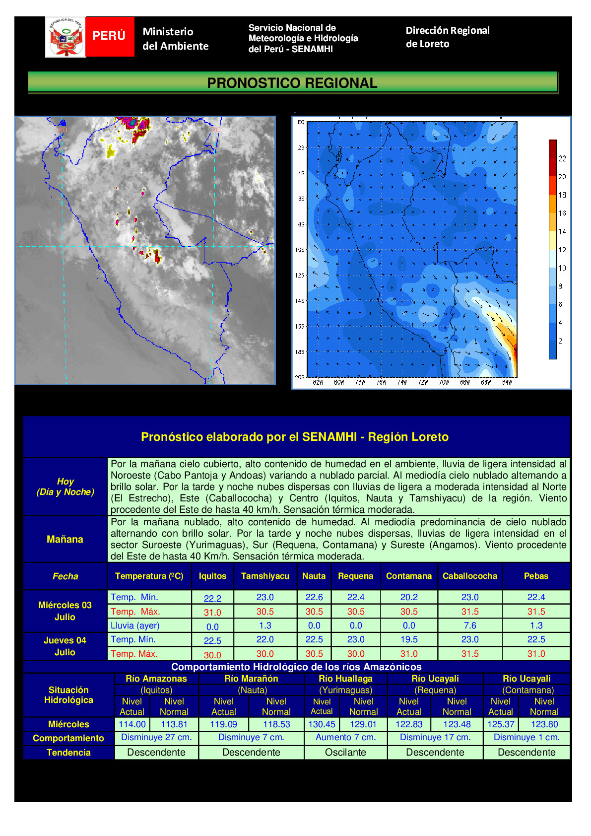 Pronostico Meteorológico e Hidrológico Regional Diario del 03/JUL/2013 - SENAMHI Loreto