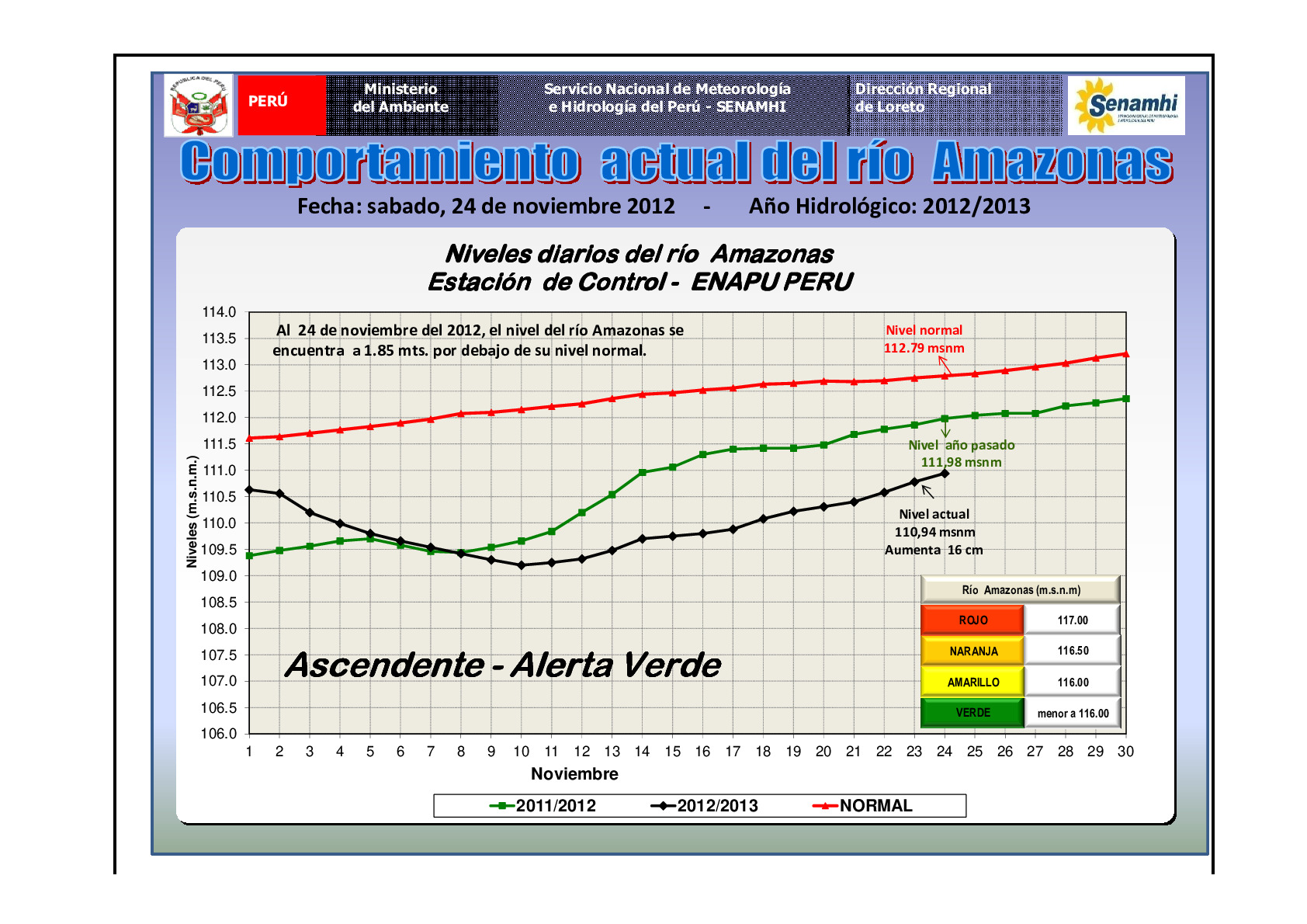PRONOSTICO REGIONAL DIARIO Y COMPORTAMIENTO HIDROLOGICO DE LOS PRINCIPALES RIOS AMAZONICOS - 24.NOV.2012