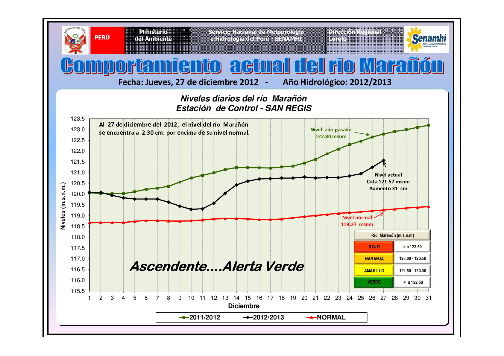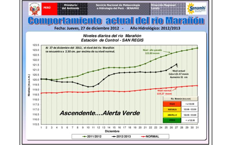 PRONOSTICO REGIONAL DIARIO Y COMPORTAMIENTO HIDROLÓGICO DE LOS PRINCIPALES RIOS AMAZONICOS - 27.DIC.2012