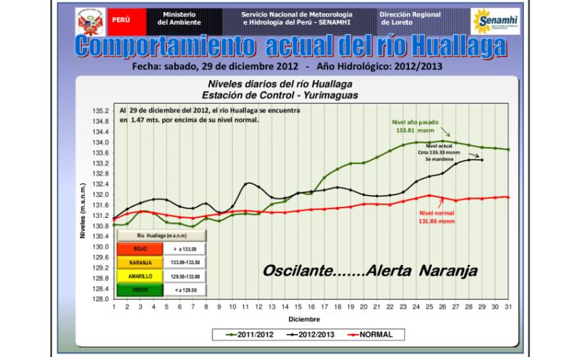 PRONOSTICO REGIONAL DIARIO Y COMPORTAMIENTO HIDROLÓGICO DE LOS PRINCIPALES RIOS AMAZONICOS - 29.DIC.2012