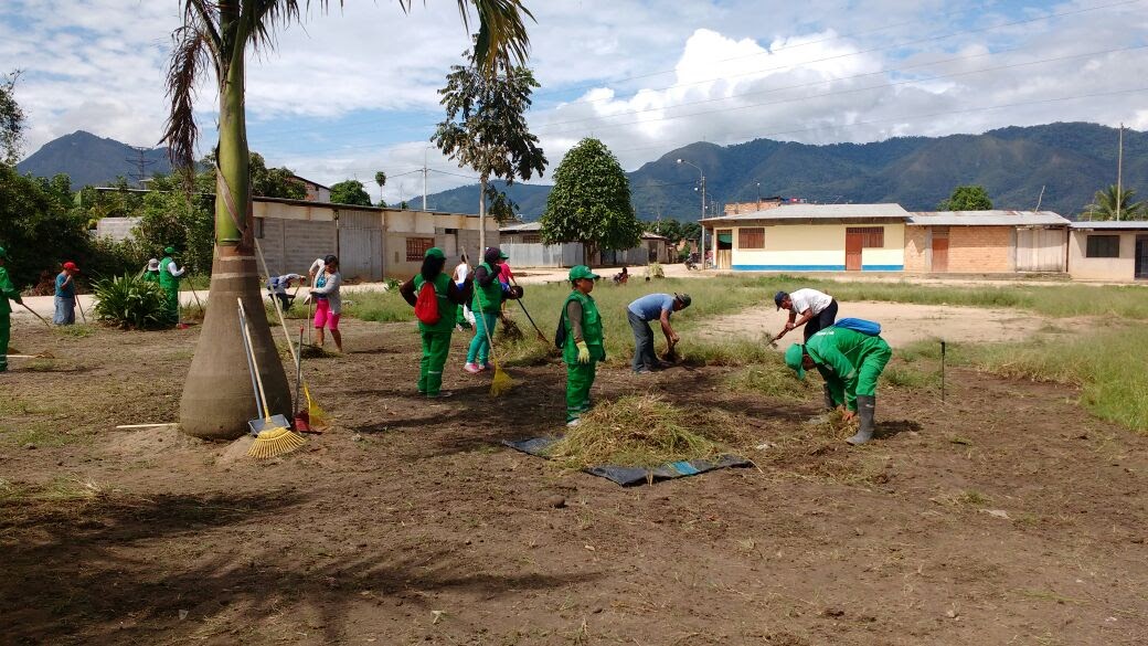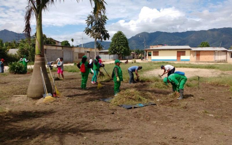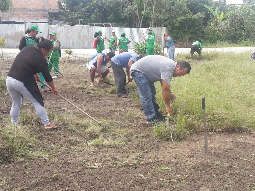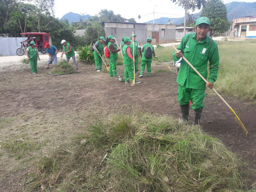 Empezaron los trabajos de limpieza en el espacio deportivo ubicado en la asociación de vivienda Jorge Chávez en Moyobamba, para la futura ejecución de la obra denominada “La canchita de mi barrio”.