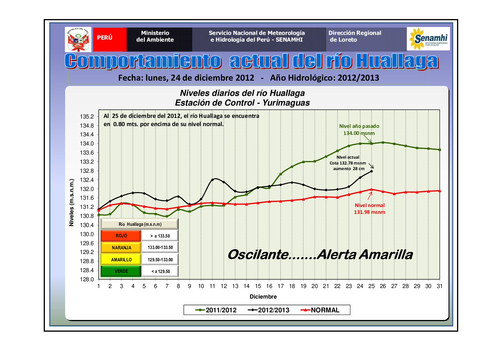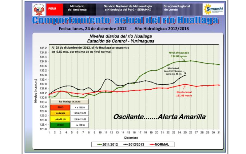 REPORTE DEL PRONOSTICO REGIONAL DIARIO Y COMPORTAMIENTO HIDROLÓGICO DE LOS PRINCIPALES RIOS AMAZONICOS - 25.DIC.2012