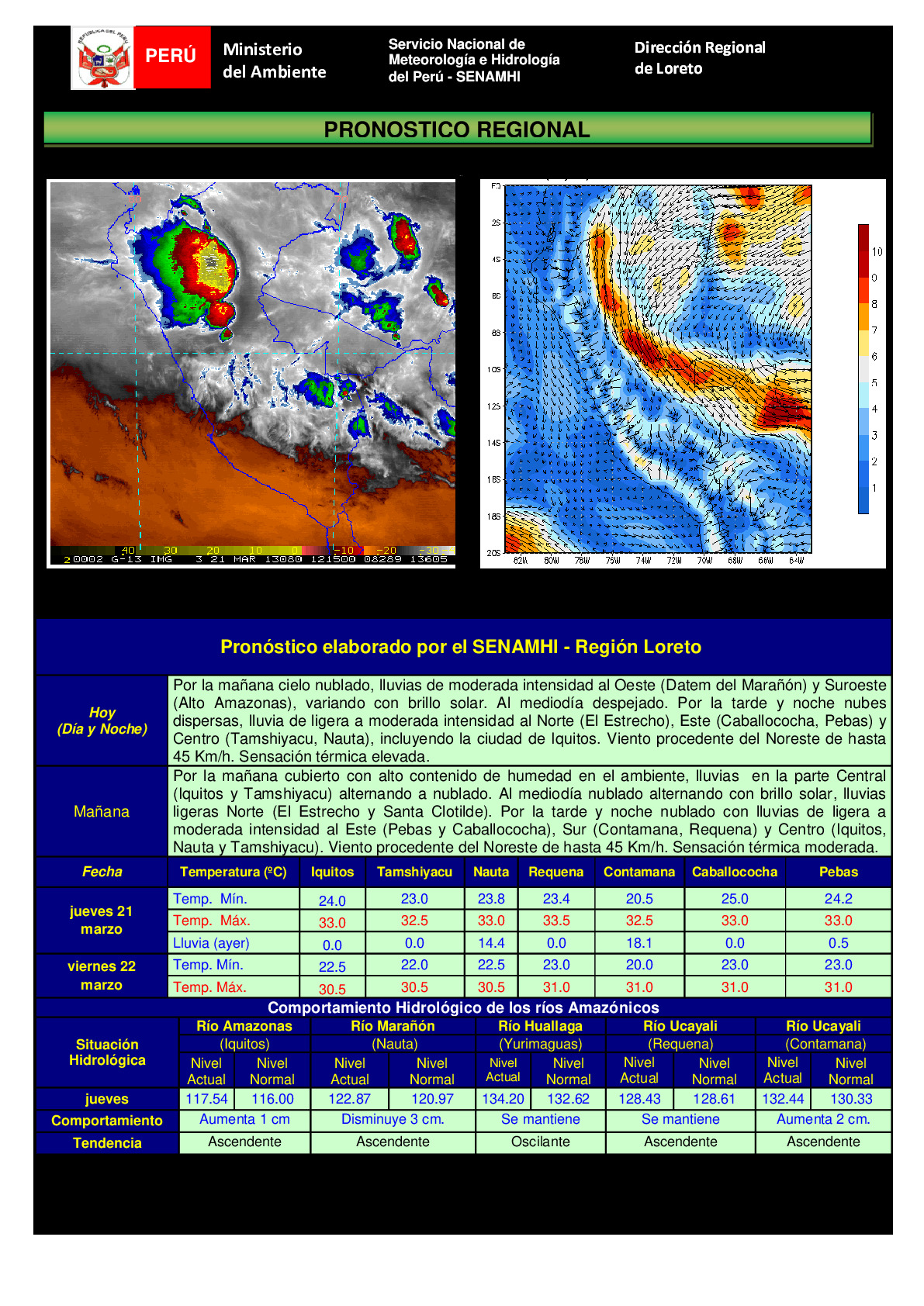 Reporte SENAMHI al 21 de Marzo del 2013