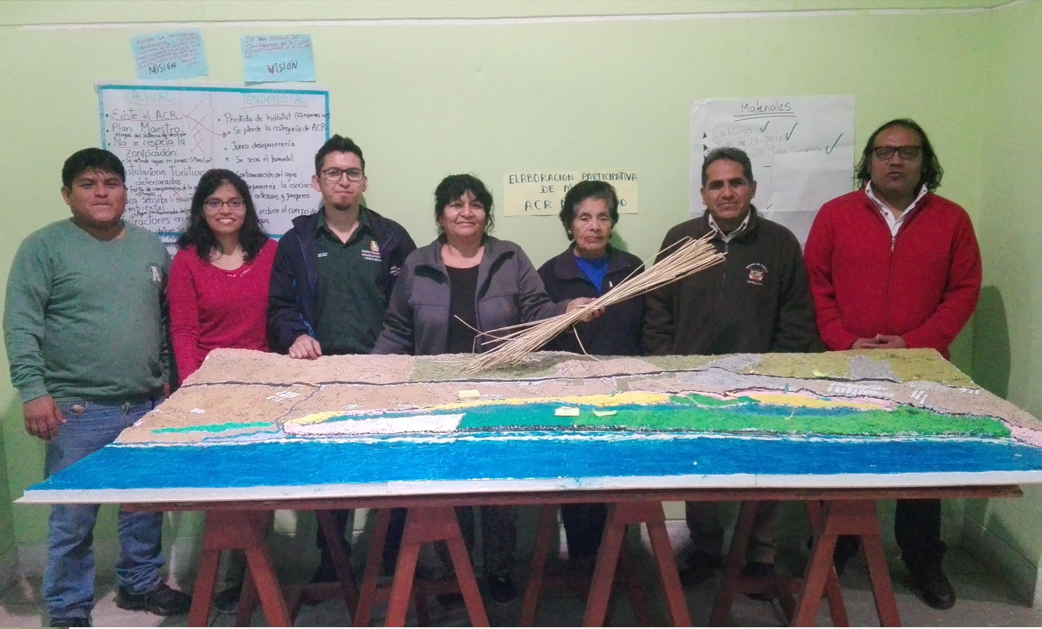 Así también se desarrolló el Tercer Taller de Sensibilización sobre efectos de los contaminantes y los impactos ambientales en el Área de Conservación Regional Albufera de Medio Mundo; Estas estrategias son plasmadas en una maqueta interpretativa, la misma que quedara como legado a los artesanos y extractores del C.P. Medio Mundo.