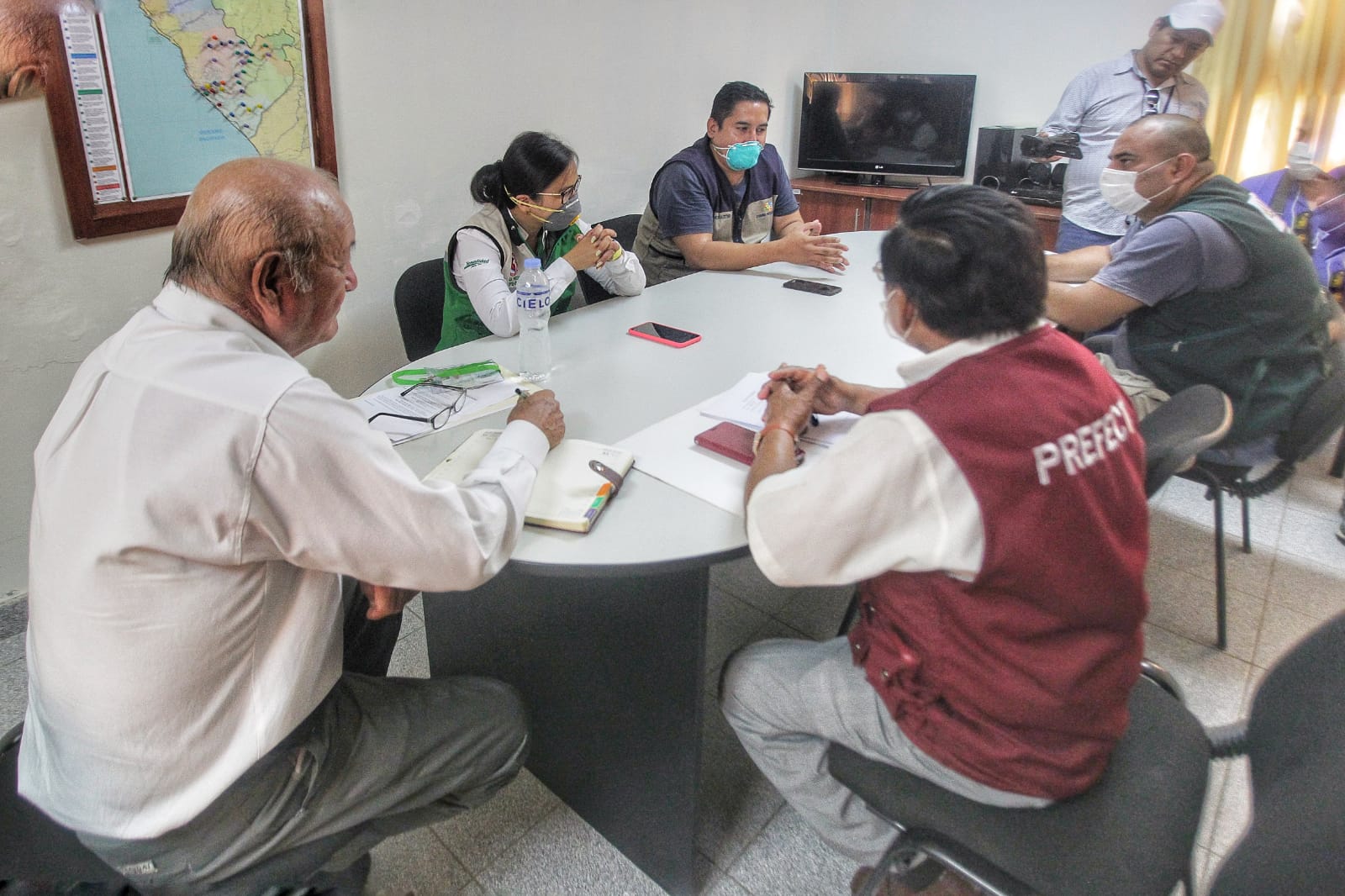 Gerenta de Recursos Naturales y Gestión del Medio Ambiente, Blga. Karina Takahashi Santos, participa junto al Prefecto Regional de Lima, Lic. Arturo Elías Cárdenas Cuzcano y el Sub Gerente de la Unidad Ejecutora Lima Sur, Ing. Miguel Ángel Melgarejo, de la reunión con productores locales de artículos de pan llevar de la provincia de Cañete.