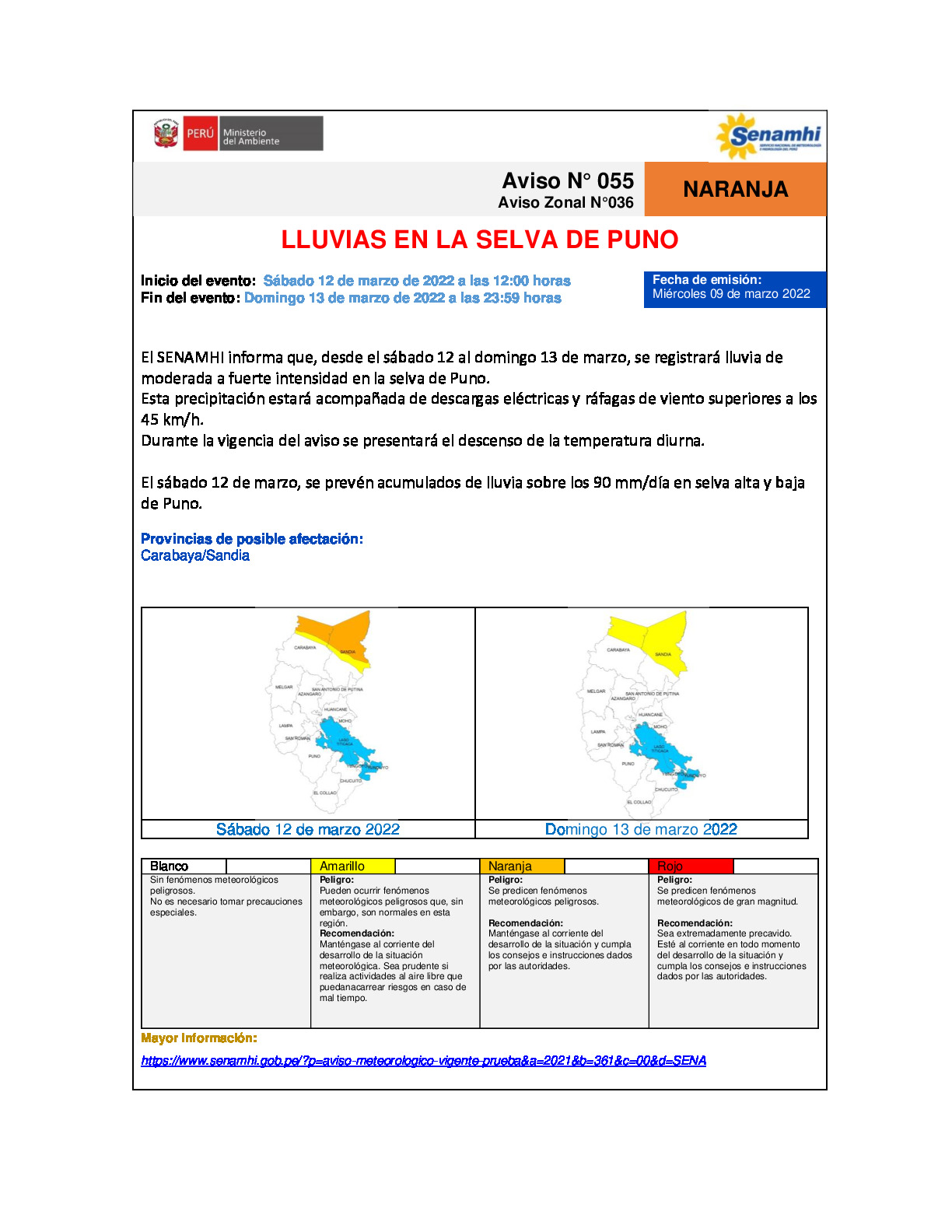 RV: Aviso meteorológico N° 055 - 036 DZ13