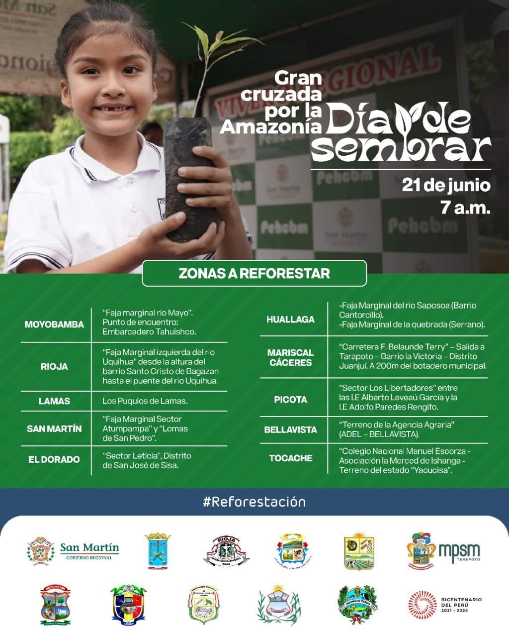 El día 21 de junio se desarrolló la actividad "Gran cruzada por la Amazonía, día de sembrar"🌱en nuestra ciudad de Rioja para la limpieza, mantenimiento y recuperación de la Faja Marginal izquierda del río Uquihua.