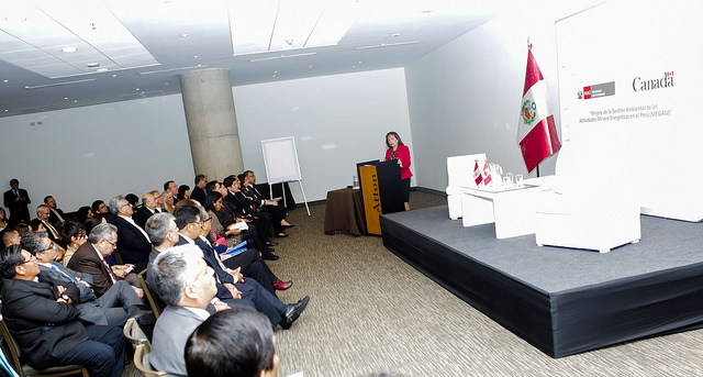 Lima, 24 de noviembre de 2016.- Con el objetivo de generar transparencia, reducir la conflictividad social y hacer más inclusiva la participación social, el Ministerio del Ambiente y la Embajada de Canadá presentaron el Proyecto “Mejora de la Gestión Ambiental de las Actividades Minero Energéticas en el Perú (MEGAM)”. La presentación estuvo a cargo de la embajadora de Canadá en el Perú, Gwyneth Kutz y el viceministro de Gestión Ambiental, Marcos Alegre.