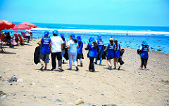 Lima, 19 de febrero de 2018.- La jornada de limpieza de la campaña Perú Limpio, Playas Limpias realizada en las playas Quibisich, Elio y Playa Azul del balneario de Huanchaco, en Trujillo, permitió recoger media tonelada (0.58 toneladas) de residuos sólidos.