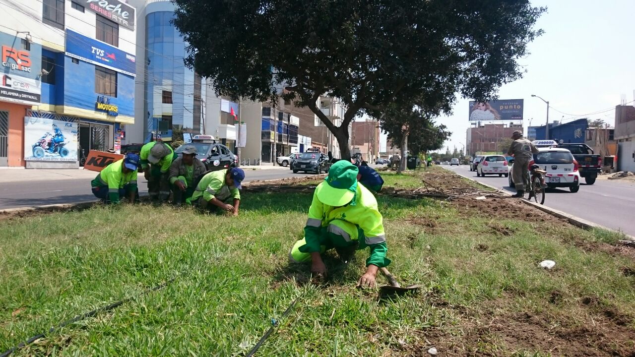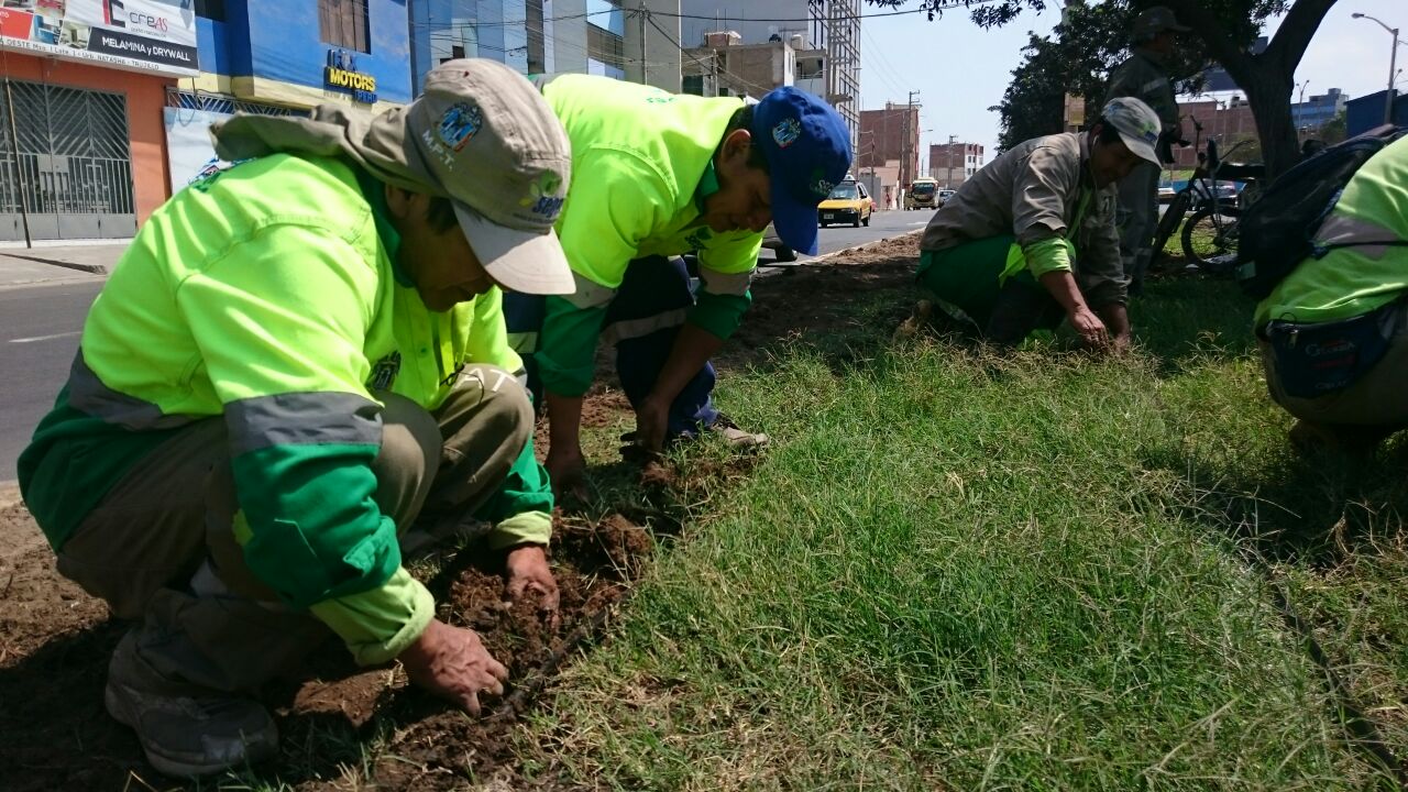El Servicio de Gestión Ambiental de Trujillo (SEGAT), a través de la Subgerencia de Áreas Verdes, continúa con la instalación del sistema de riego por goteo en el perímetro de la avenida América, que inició el pasado 02 de julio.