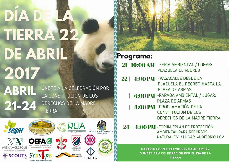 El Servicio de Gestión Ambiental de Trujillo (Segat), a través de la Subgerencia de Calidad Ambiental y Proyectos, prepara diversas actividades para este 22 de abril, fecha en la que se celebra el Día de la Tierra.
