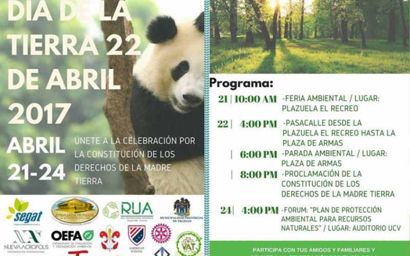 Como antesala al día central, el viernes 21 de abril desde las 10 de la mañana, se ofrecerá una feria ambiental en la plazuela El Recreo, en donde se destacarán las vías hacía una vida sostenible con el planeta.