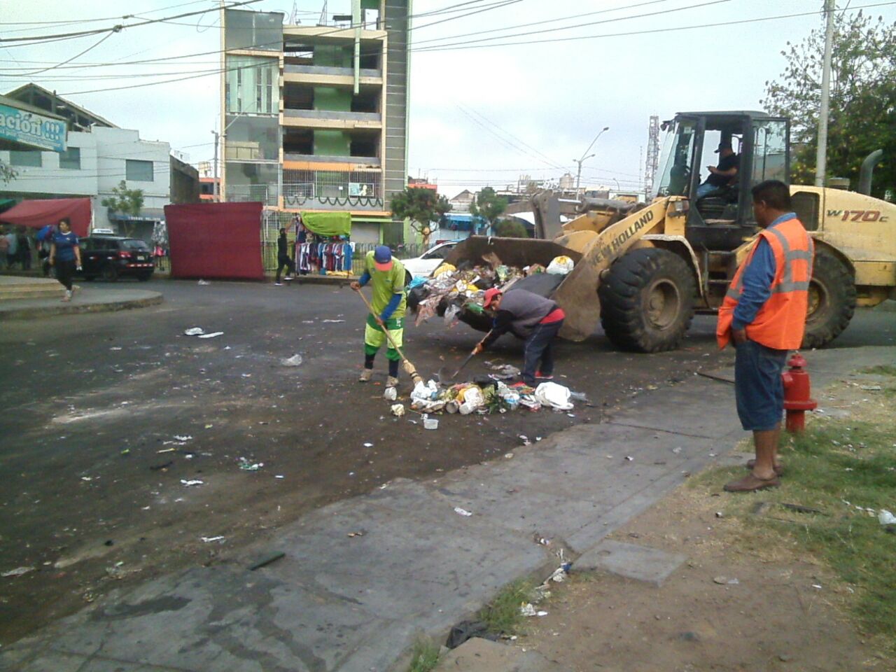 El trabajo se logró gracias a las 9 compactadoras, 3 camiones polleros, 2 volquetes, un cargador frontal. Además, se aplicó el barrido comercial con 50 personas para la zona de El Virrey, el ex mercado Mayorista con 40 personas y el sistema de recojo de residuos con 12 con motocars.