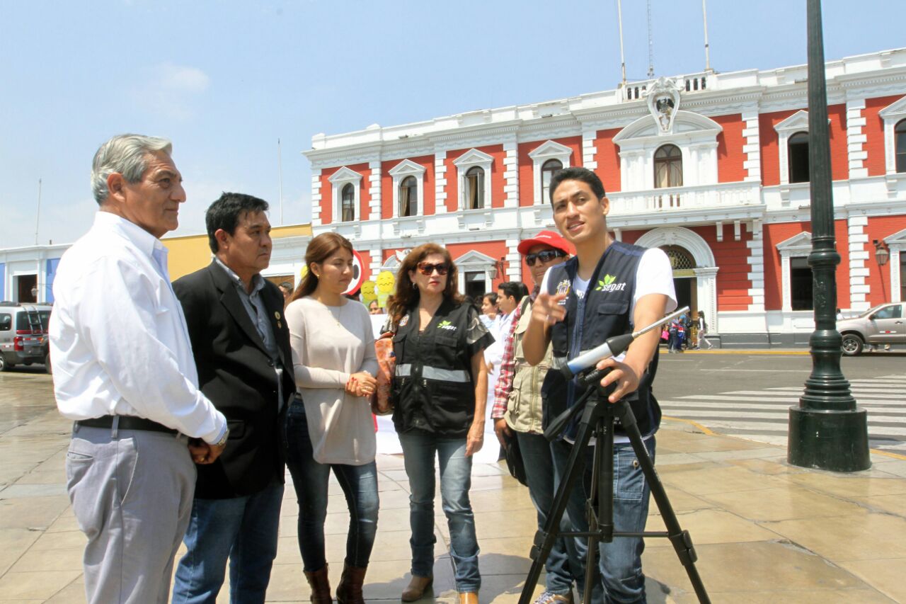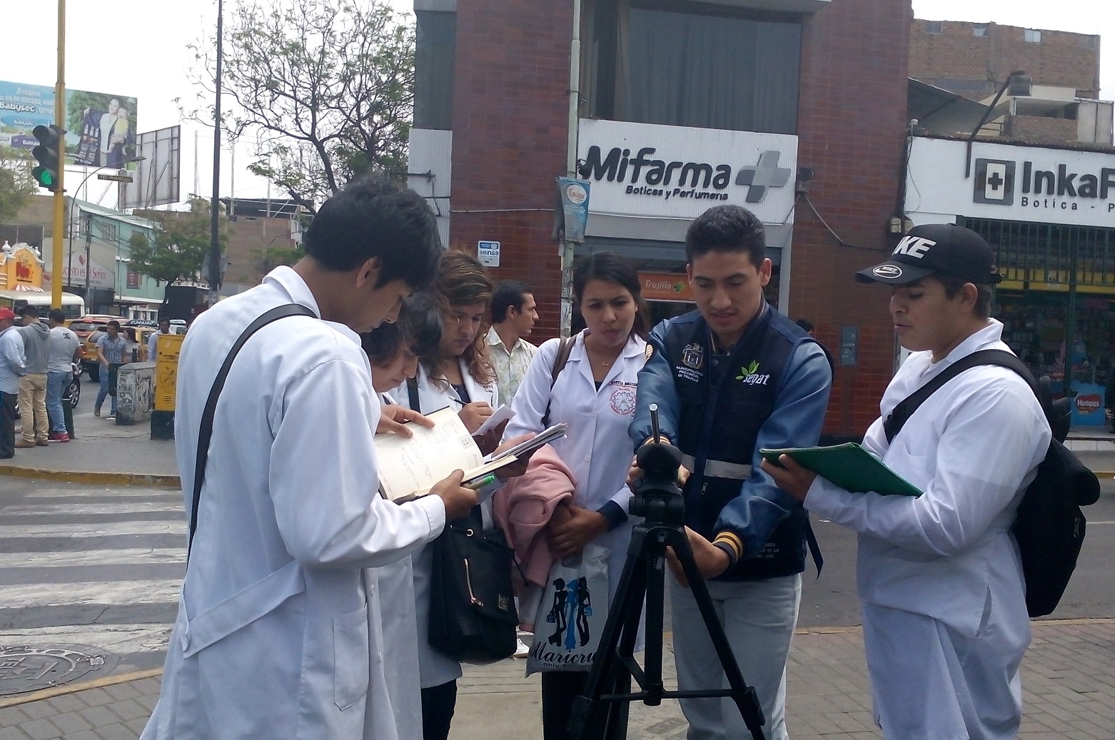 Agenciados del sonómetro, paneles corta tráfico, paletas y volantes, estos amigos del medio ambiente, empezaron sus actividades ayer en la Av. España entre los jirones Pizarro y Bolívar, y hoy, en el perímetro de la Plaza de Armas; registrando en la última intervención, 105 decibeles, siendo el máximo permitido 60.