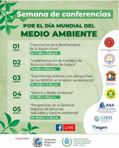 El GORE Puno, por intermedio de la Gerencia Regional de Recursos Naturales y Gestión Ambiental, programa conferencias virtuales por el Día Mundial del Medio ambiente.