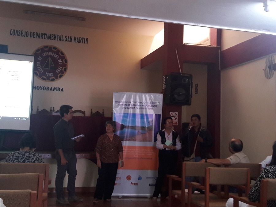El Gobierno Regional San Martín a través de la Autoridad Regional Ambiental en conjunto con la Oficina Regional de Desarrollo de los Pueblos Indígenas -ORDEPISAM, Proyecto Especial Alto Mayo - PEAM, Colegio de Ingenieros del Perú – Sede Departamental San Martín, EPS – Moyobamba SRLtda y el Proyecto BioCuencas de Conservación Internacional, integrantes del Equipo Técnico (reconocido mediante Acuerdo Regional N°076-2016-GRSM/CR), socializó ante el Grupo Impulsor (reconocido mediante Acuerdo Regional N° 105-2013-GRSM/CR), el avance del proceso de Creación y Conformación del Comité de Subcuenca en la Amazonía – Cuenca Río Mayo, el mismo que tuvo lugar el día viernes 11 de noviembre del año en curso, en el auditorio del Colegio de Ingenieros de la ciudad Moyobamba.