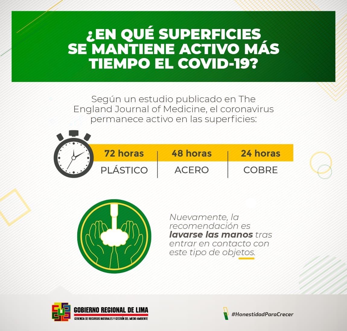 Sabias que el Covid-19 puede permanecer hasta por 72 horas adherido a distintos tipos de objetos, tales como plasticos?