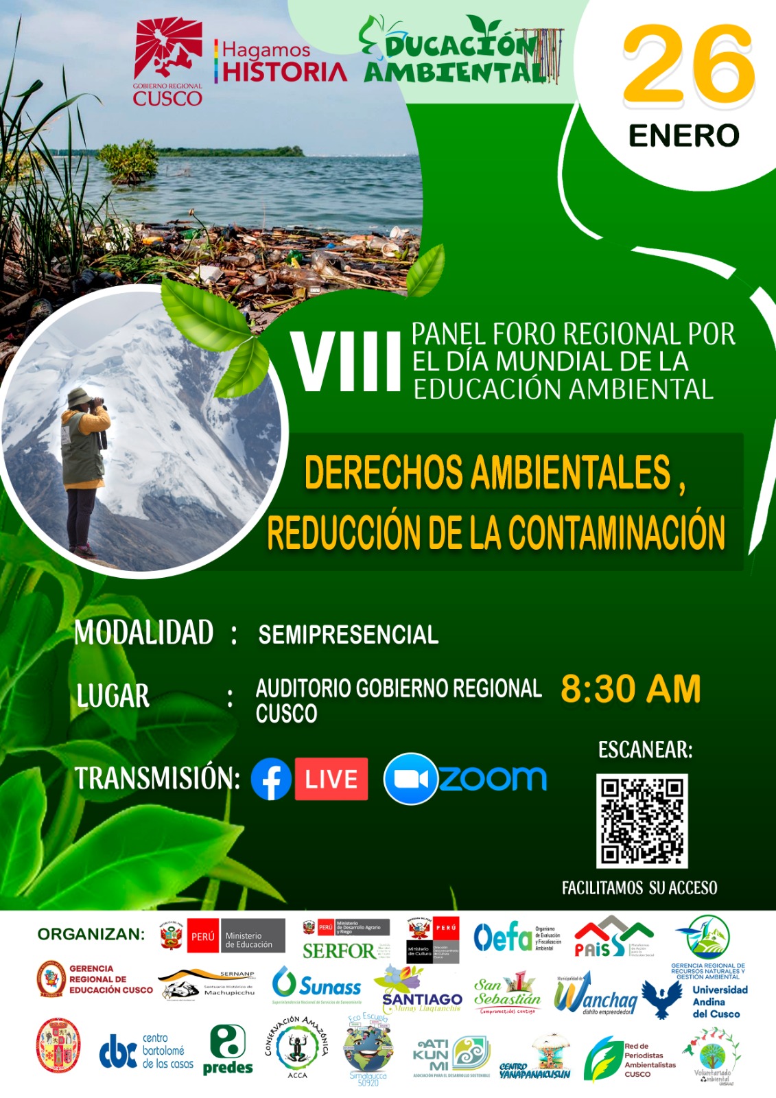 ✅El próximo 26 de enero se conmemora el Día Mundial de la Educación Ambiental 🍃, con este propósito se realizará el VIII Panel Foro Regional por el Día Mundial de la Educación Ambiental, “Derechos Ambientales, Reducción de la Contaminación”.