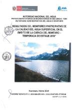 RESULTADOS DEL MONITOREO PARTICIPATIVO DE LA CALIDAD DE AGUA SUPERFICIAL EN EL AMBITO DE LA CUENTA DEL RIO MANTARO 2018